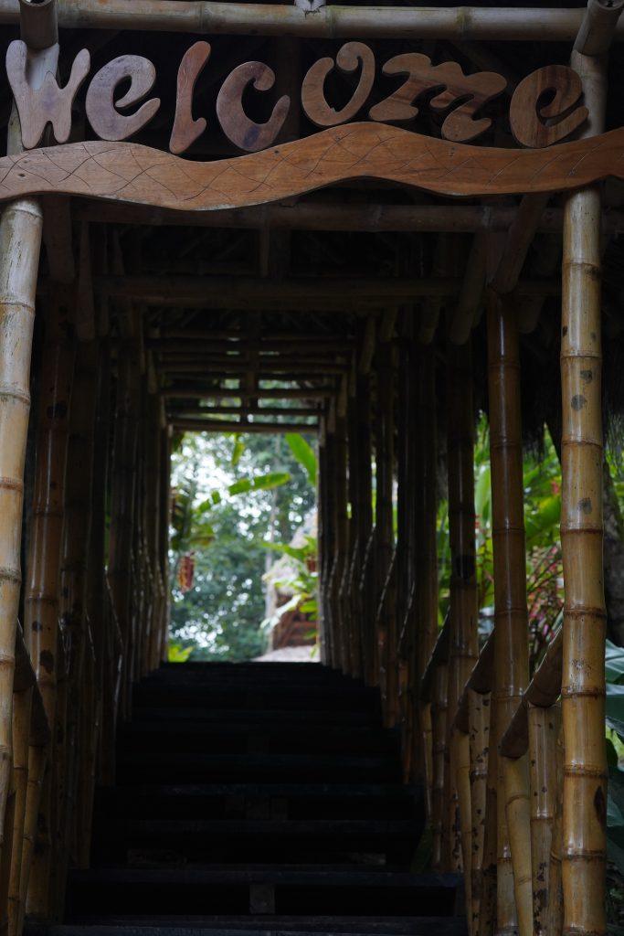 Nach der langen Anreise war die Ankunft in der Bamboo Lodge ein echter Moment der Erleichterung und der Vorfreude. Die Lodge liegt abgeschieden und ruhig, eingebettet in den dichten Regenwald und direkt am Flussufer. Alles um uns herum war von Naturgeräuschen erfüllt. Die Bamboo Lodge erreichten wir zu Mittag, wo wir herzlich von der Lodge-Crew mit einem Erfrischungsgetränk empfangen wurden. Wir bekamen eine kurze Einführung in den Ablauf der nächsten Tage. Nachdem wir unser Zimmer bezogen hatten, gab es auch schon ein 3-Gänge-Menü, welches einem 5-Sterne Restaurant glich.