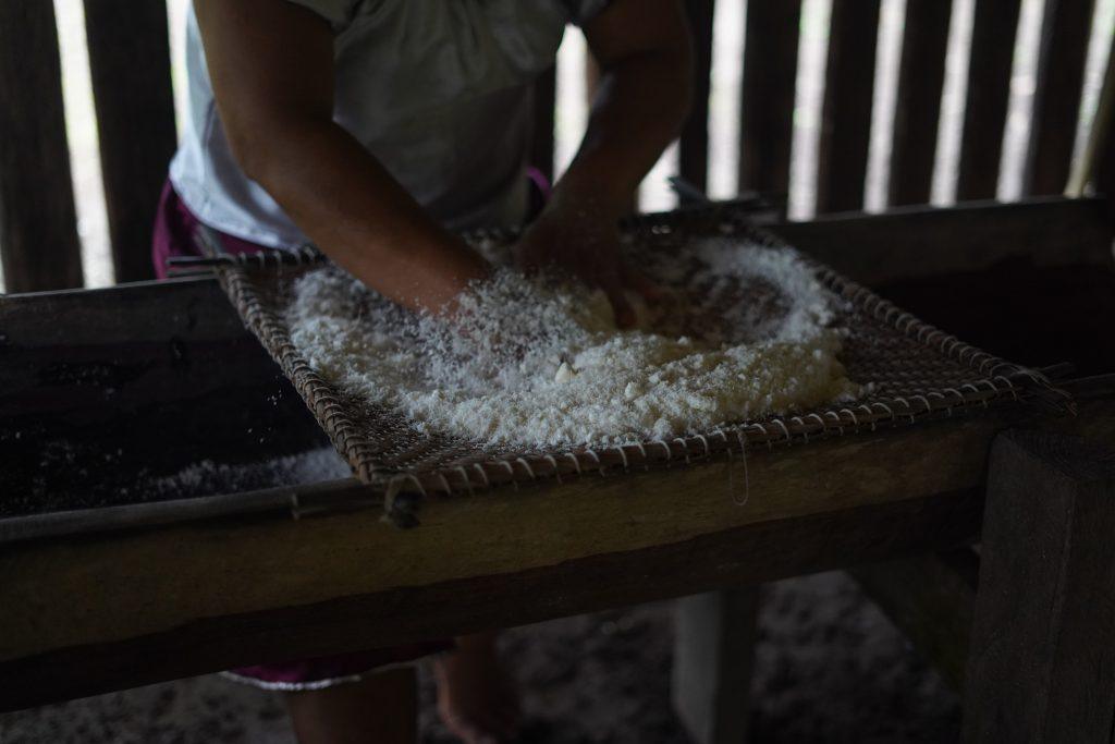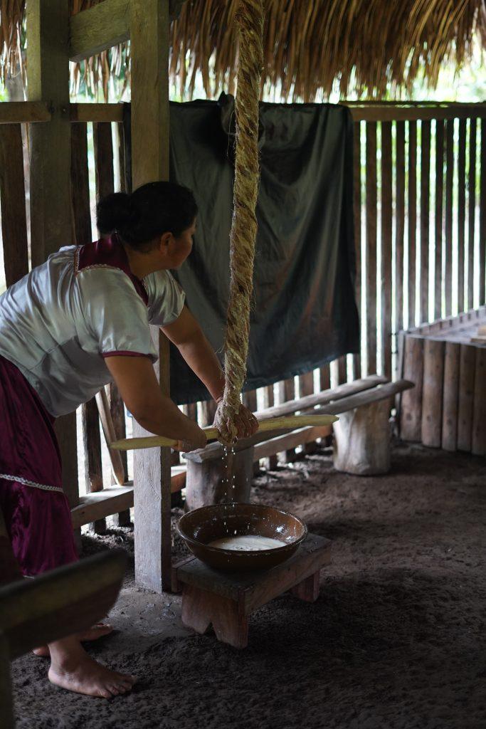 Ein weiterer bewegender Moment war der Besuch bei der indigenen Siona-Gemeinschaft. Dort trafen wir eine Frau aus der Siona-Gemeinde, die uns in die Kunst der Yuca-Ernte einführte. Wir lernten, wie traditionelles Yucca-Brot hergestellt wird, und erhielten Einblicke in ihre Kultur und Lebensweise.
