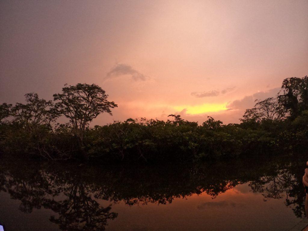 Ein weiteres Highlight war definitiv die Begegnung mit einem Black Kaiman – ganze 4,5 Meter lang! Auf einer Bootstour glitten wir über das Wasser, auf der Suche nach diesen unheimlichen Reptilien. Und tatsächlich konnten wir einige von ihnen entdecken, kleinere und größere Kaimane. Nachts findet man diese Kaimane indem man mit der Taschenlampe in die Ferne leuchtet. Dabei reflektieren ihre Augen im orangenen Licht.