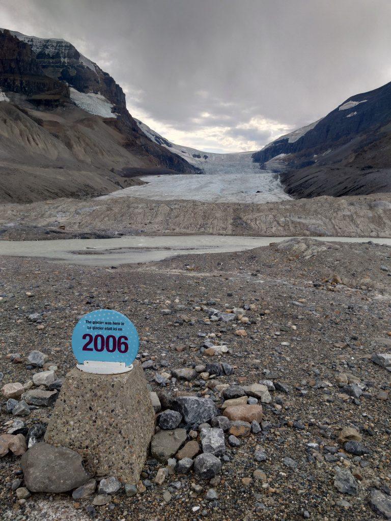 Unsere Fahrt entlang des legendären Icefield Parkway führte uns weiter zu einem der beeindruckendsten Naturwunder Kanadas – dem noch vorhandenen Gletscher. Als wir uns dem Gletscher näherten, war es schwer, den dramatischen Rückgang der Eisfläche zu ignorieren. Im Jahr 2006 stand der Gletscher noch viel weiter vorne, doch heute ist er deutlich geschmolzen. Dieser Rückgang ist eine eindringliche Erinnerung an die Auswirkungen des Klimawandels. Es lässt einen innehalten und über die vergängliche Schönheit der Natur nachdenken.
