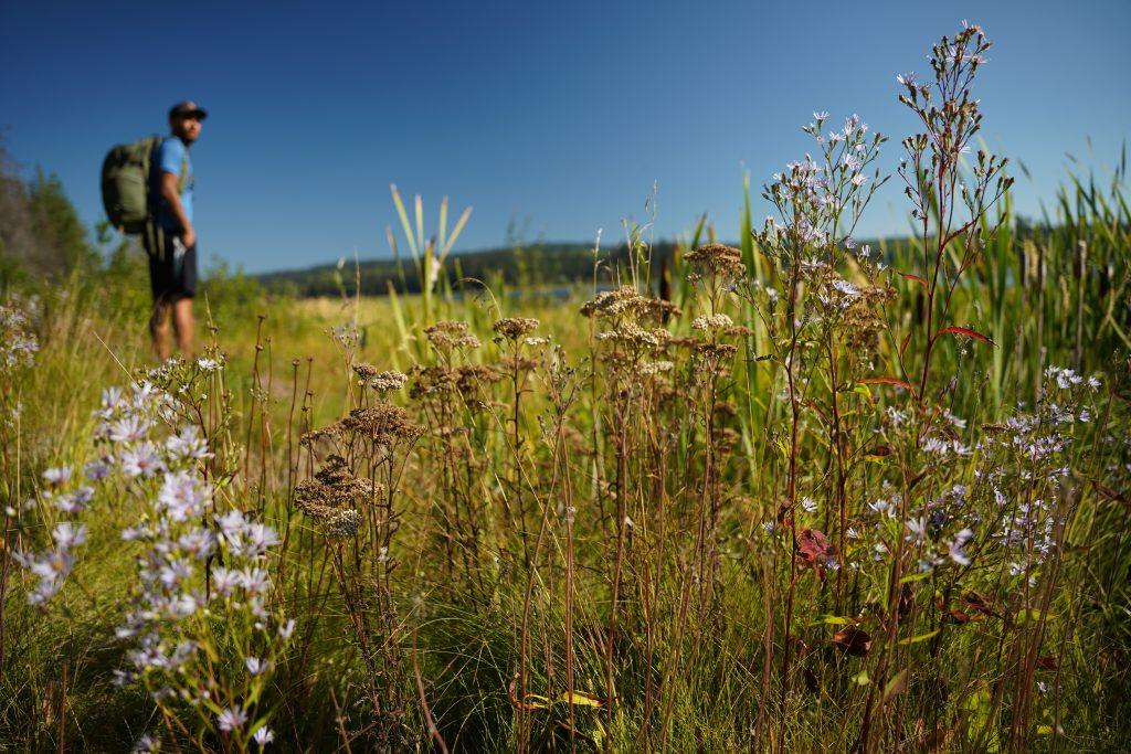 Auf dem Highway 97 zum Summit Lake erspähten wir einen weiteren Bären – diesmal ganz entspannt weit hinter einer Kuhherde. Am Abend wanderten wir zwei Stunden durch den Jackman Trail, der durch verkohlte, aber sich regenerierende Wälder führte. Allein unterwegs, begleitet von Koyoten-Losung und Bärenspuren, war die Atmosphäre gleichermaßen spannend wie berührend. Ein echter Geheimtipp!