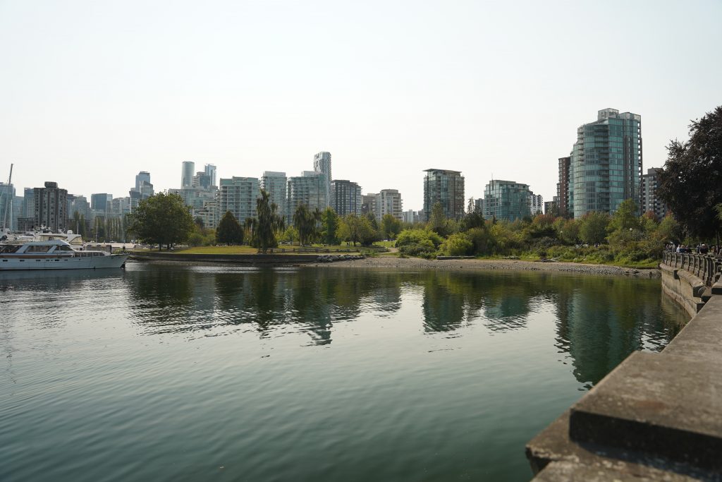 Unser letzter Reisetag führte uns nach Vancouver, doch leider blieb mir die Stadt nicht in bester Erinnerung. Wir begannen mit einem langen Spaziergang durch den wunderschönen Stanley Park und erkundeten den Uferweg des Seawall Path, der sich perfekt für eine Fahrradtour eignet. Am Third Beach gönnte ich mir noch eine letzte kostenlose Dusche – wie praktisch! Drei Stunden verbrachten wir in dieser grünen Oase – und hätten dort gut noch länger verweilen können.