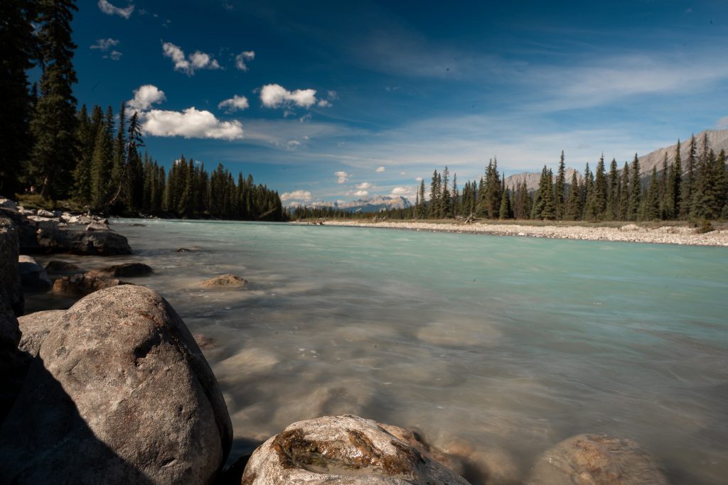 Leider war der Jasper Nationalpark im Juli 2024 wegen eines verheerenden Waldbrands größtenteils gesperrt. 33.000 Hektar waren betroffen. Dennoch durften wir durchfahren und machten Halt am Moose Lake und am versteckten Yellowhead Lake. Der Moose Lake ist umgeben von dichten Wäldern und sanften Hügeln. Das Wasser war kristallklar und schimmerte in verschiedenen Blau- und Grüntönen. Die Gegend rund um den See war unglaublich ruhig, ideal für eine kleine Auszeit. Wir nutzten die Gelegenheit, um unsere Füße in das erfrischende Wasser zu tauchen – ein absoluter Genuss nach den langen Autofahrten.