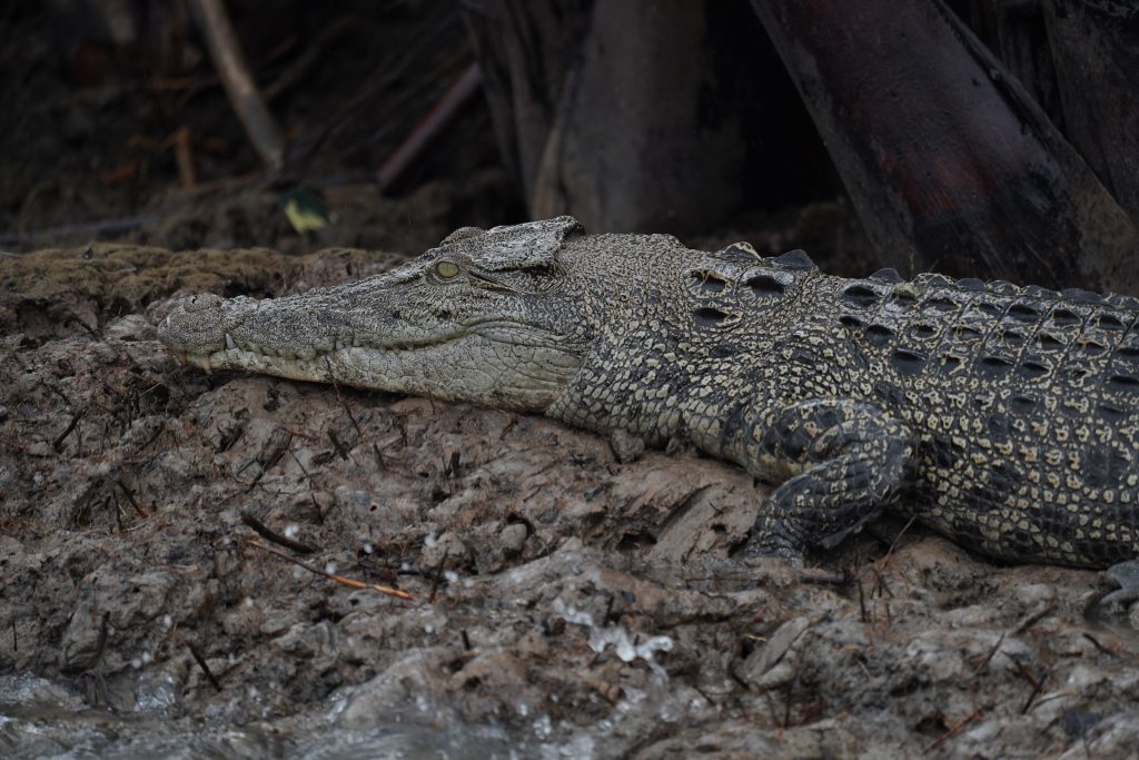 Doch das war erst der Anfang: Auf der Weiterfahrt zeigten sich auch Irrawaddy-Delfine – faszinierende Tiere, die sowohl im Salz- als auch im Süßwasser leben und besonders gerne in Flussmündungen unterwegs sind. Anders als andere Delfine haben sie keinen Schnabel, sondern einen runden Kopf – fast wie eine kleine Beluga-Version. Kurz darauf begegneten wir noch einem weiteren Krokodil, das ungefähr 2,5 Meter lang war – diesmal aus nächster Nähe. Ein echter Traummoment, der für immer bleibt..