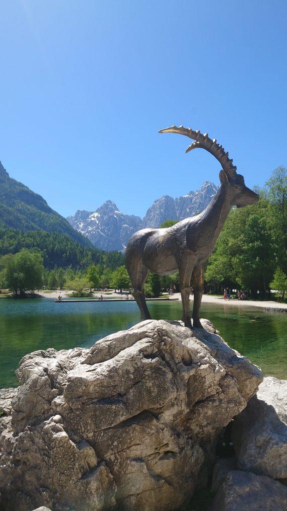 - Statue eines Ziegenbocks (Zlatorog) – hier handelt es sich um eine Sagengestalt in den slowenischen Alpen.
